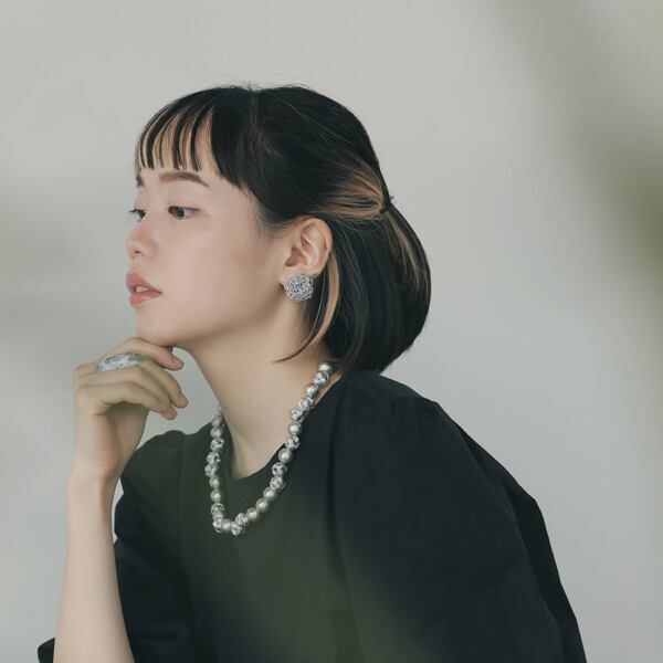 12mmのコットンパールを合わせて仕上げた